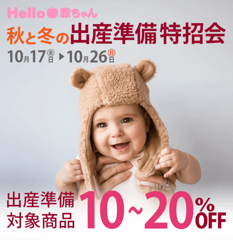 ※Hello赤ちゃんONLINE SHOPでは、10%OFFでの同時開催となります。