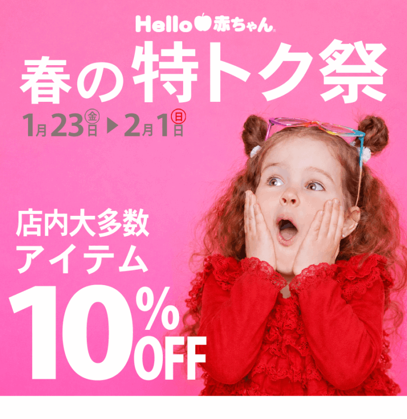 新年を迎え、少し落ち着いてきたこのタイミングで、ベビー・キッズに必要な物の大多数が10%OFFになる特別セールを開催します!