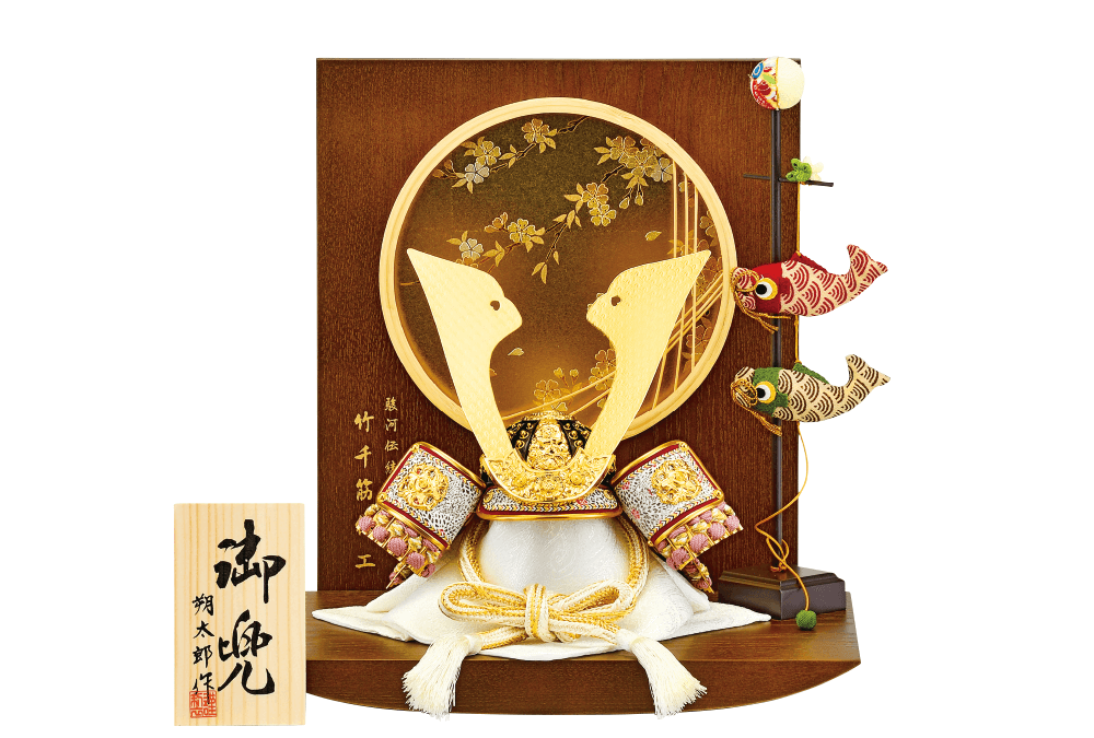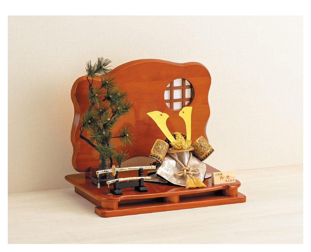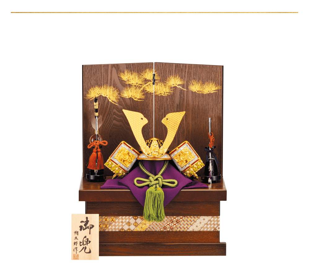 朔太郎作 こげ茶裾濃兜 衝立飾り
