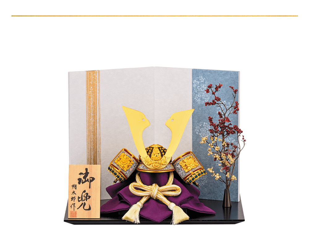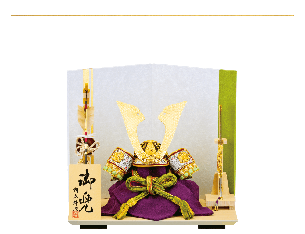朔太郎作 縹裾濃縅大鍬兜 衝立飾り